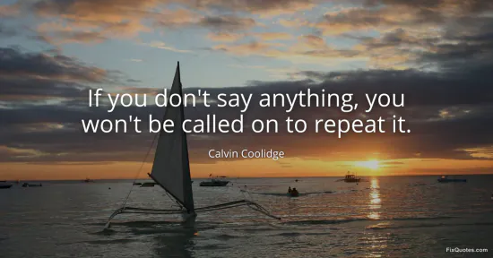 Coolidge, Calvin. (2026, January 17). If you don't say anything, you won't be called on to repeat it. FixQuotes. https://fixquotes.com/quotes/if-you-dont-say-anything-you-wont-be-called-on-to-30365/