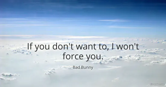 Bunny, Bad. "If you don't want to, I won't force you." FixQuotes. February 16, 2026. https://fixquotes.com/quotes/if-you-dont-want-to-i-wont-force-you-184789/.