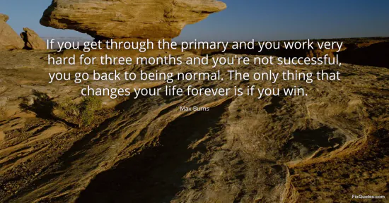 Burns, Max. "If you get through the primary and you work very hard for three months and you're not successful, you go back to being normal. The only thing that changes your life forever is if you win." FixQuotes. January 16, 2026. https://fixquotes.com/quotes/if-you-get-through-the-primary-and-you-work-very-115673/.