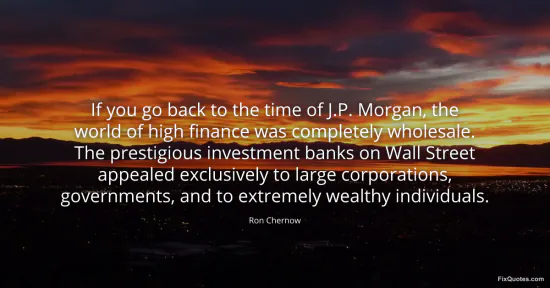 Chernow, Ron. (2026, January 15). If you go back to the time of J.P. Morgan, the world of high finance was completely wholesale. The prestigious investment banks on Wall Street appealed exclusively to large corporations, governments, and to extremely wealthy individuals. FixQuotes. https://fixquotes.com/quotes/if-you-go-back-to-the-time-of-jp-morgan-the-world-161580/