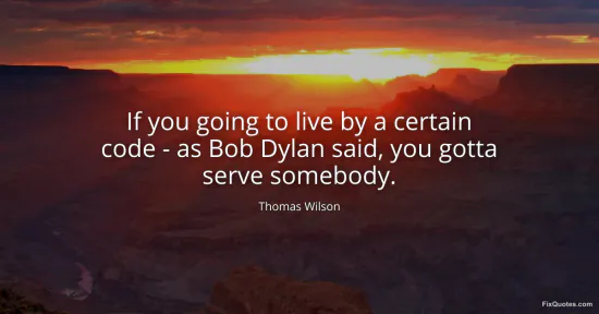 Wilson, Thomas. (2026, January 15). If you going to live by a certain code - as Bob Dylan said, you gotta serve somebody. FixQuotes. https://fixquotes.com/quotes/if-you-going-to-live-by-a-certain-code-as-bob-148113/