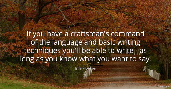 Deaver, Jeffery. "If you have a craftsman's command of the language and basic writing techniques you'll be able to write - as long as you know what you want to say." FixQuotes. January 17, 2026. https://fixquotes.com/quotes/if-you-have-a-craftsmans-command-of-the-language-56895/.