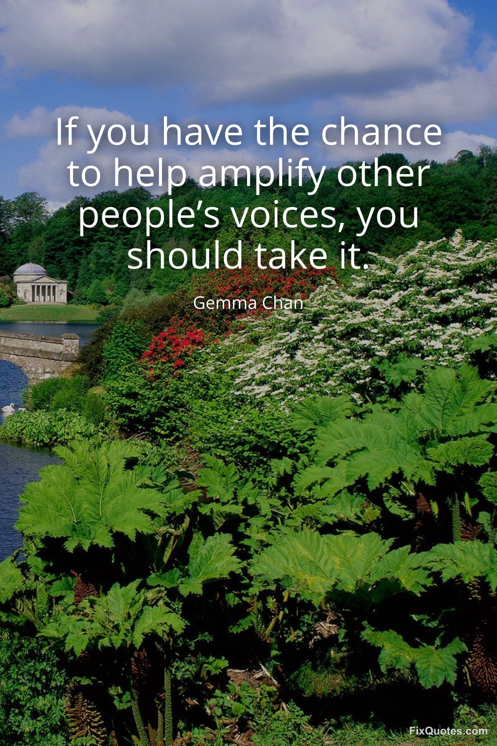 Chan, Gemma. (2026, January 26). If you have the chance to help amplify other people’s voices, you should take it. FixQuotes. https://fixquotes.com/quotes/if-you-have-the-chance-to-help-amplify-other-184410/