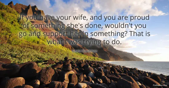 "If you have your wife, and you are proud of something she's done, wouldn't you go and support her in something? That is what I was trying to do." FixQuotes, 16 Jan. 2026, https://fixquotes.com/quotes/if-you-have-your-wife-and-you-are-proud-of-91063/. Accessed 12 Feb. 2026.