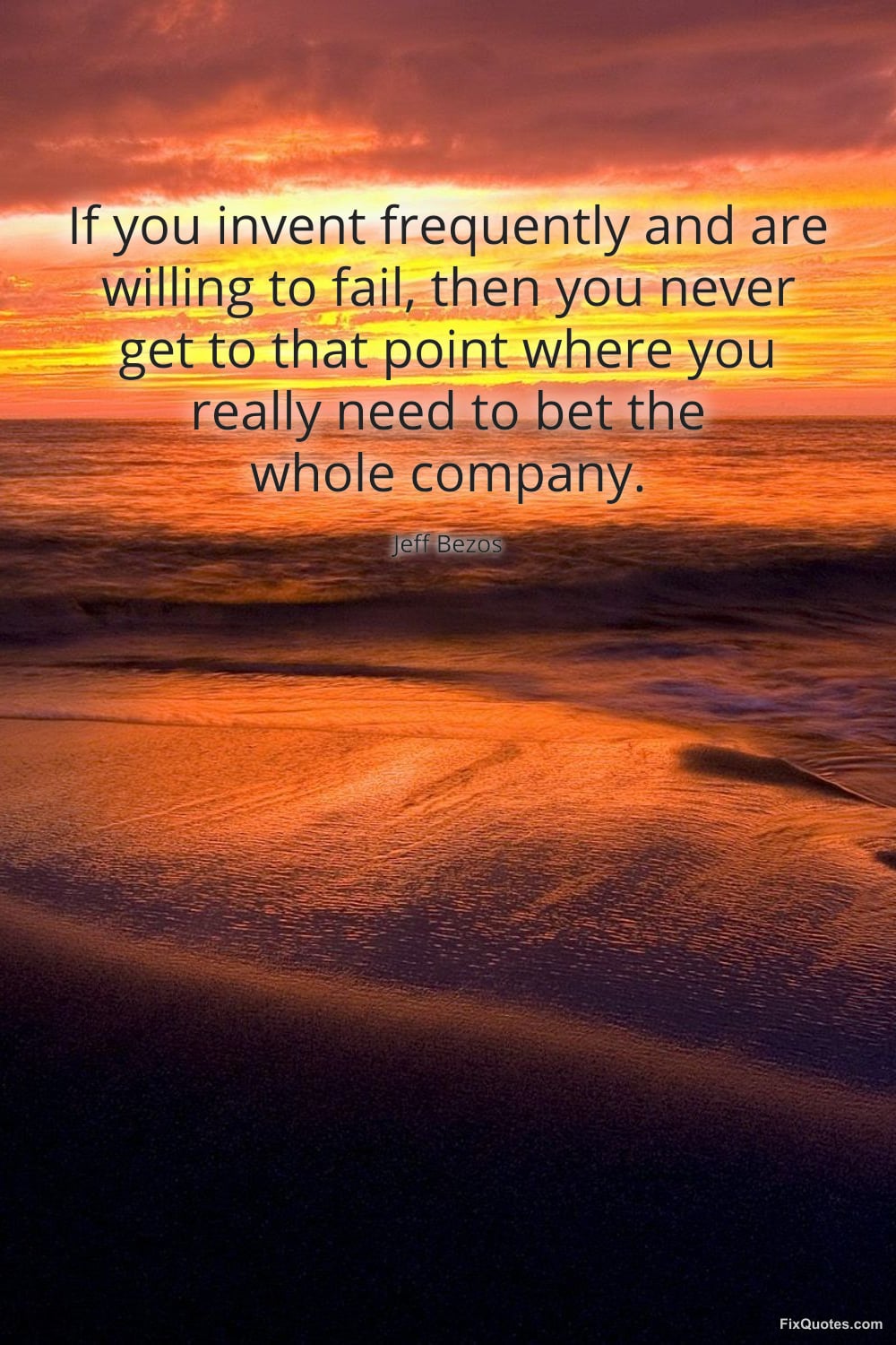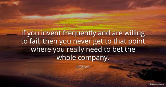 Bezos, Jeff. "If you invent frequently and are willing to fail, then you never get to that point where you really need to bet the whole company." FixQuotes. March 25, 2026. https://fixquotes.com/quotes/if-you-invent-frequently-and-are-willing-to-fail-186375/.