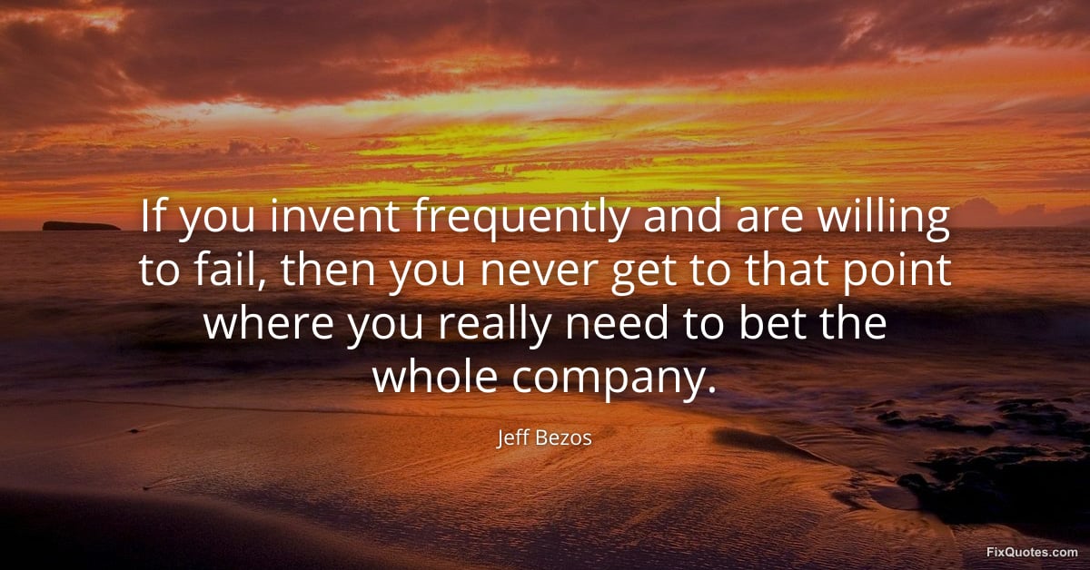 Bezos, Jeff. (2026, March 25). If you invent frequently and are willing to fail, then you never get to that point where you really need to bet the whole company. FixQuotes. https://fixquotes.com/quotes/if-you-invent-frequently-and-are-willing-to-fail-186375/