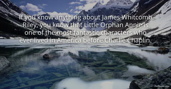 Young, Marguerite. "If you know anything about James Whitcomb Riley, you know that Little Orphan Annie is one of the most fantastic characters who ever lived in America before Charlie Chaplin." FixQuotes. January 17, 2026. https://fixquotes.com/quotes/if-you-know-anything-about-james-whitcomb-riley-71079/.