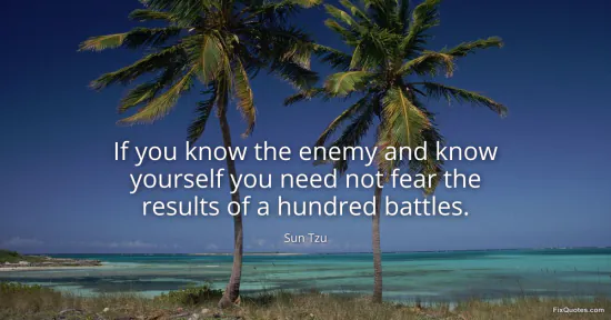 Tzu, Sun. (2026, January 18). If you know the enemy and know yourself you need not fear the results of a hundred battles. FixQuotes. https://fixquotes.com/quotes/if-you-know-the-enemy-and-know-yourself-you-need-13840/