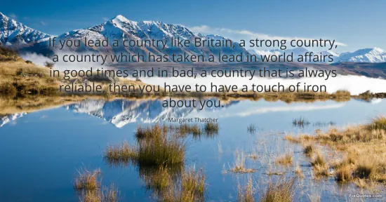 Thatcher, Margaret. "If you lead a country like Britain, a strong country, a country which has taken a lead in world affairs in good times and in bad, a country that is always reliable, then you have to have a touch of iron about you." FixQuotes. January 17, 2026. https://fixquotes.com/quotes/if-you-lead-a-country-like-britain-a-strong-28169/.