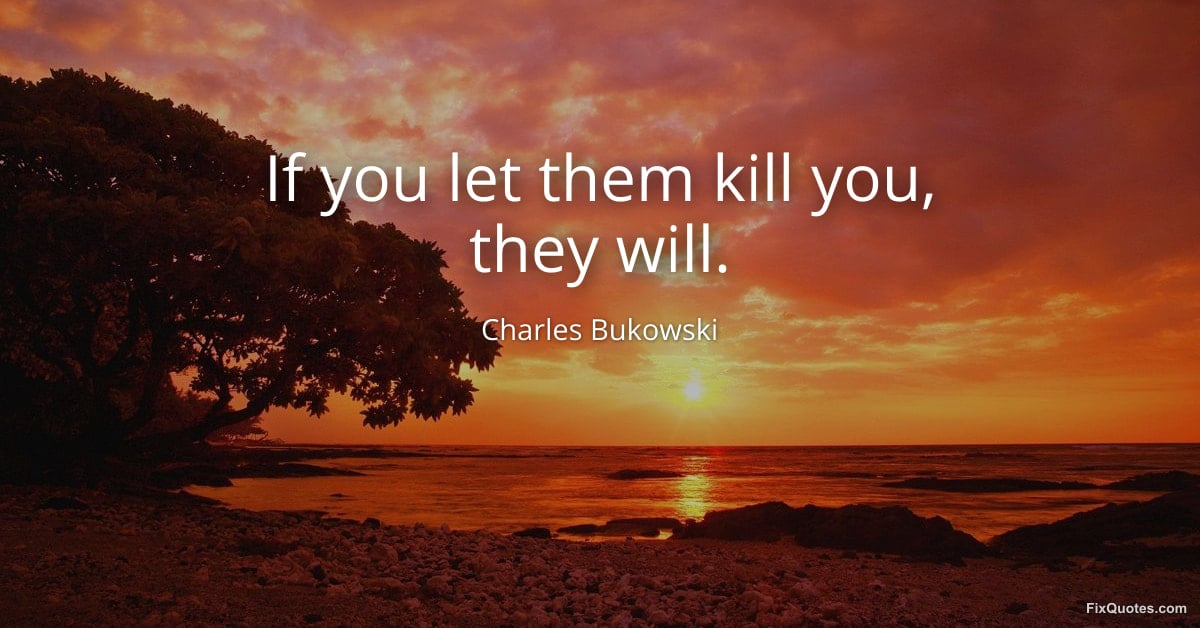Bukowski, Charles. (2026, February 10). If you let them kill you, they will. FixQuotes. https://fixquotes.com/quotes/if-you-let-them-kill-you-they-will-185240/