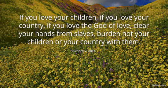Allen, Richard V. "If you love your children, if you love your country, if you love the God of love, clear your hands from slaves, burden not your children or your country with them." FixQuotes. January 17, 2026. https://fixquotes.com/quotes/if-you-love-your-children-if-you-love-your-81350/.