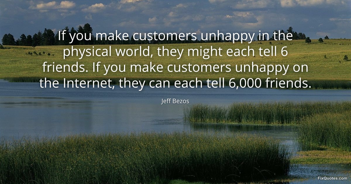 Bezos, Jeff. (2026, March 25). If you make customers unhappy in the physical world, they might each tell 6 friends. If you make customers unhappy on the Internet, they can each tell 6,000 friends. FixQuotes. https://fixquotes.com/quotes/if-you-make-customers-unhappy-in-the-physical-186334/
