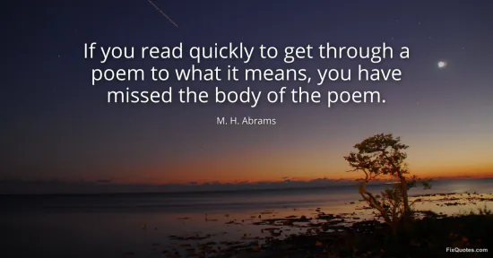 Abrams, M. H. (2026, January 16). If you read quickly to get through a poem to what it means, you have missed the body of the poem. FixQuotes. https://fixquotes.com/quotes/if-you-read-quickly-to-get-through-a-poem-to-what-87799/