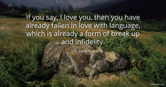 Baudrillard, Jean. "If you say, I love you, then you have already fallen in love with language, which is already a form of break up and infidelity." FixQuotes. January 15, 2026. https://fixquotes.com/quotes/if-you-say-i-love-you-then-you-have-already-9156/.