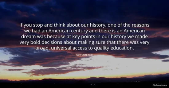 Mehlman, Ken. (2026, January 15). If you stop and think about our history, one of the reasons we had an American century and there is an American dream was because at key points in our history we made very bold decisions about making sure that there was very broad, universal access to quality education. FixQuotes. https://fixquotes.com/quotes/if-you-stop-and-think-about-our-history-one-of-156487/