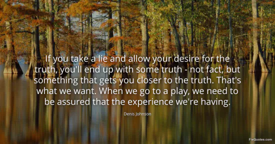 Johnson, Denis. "If you take a lie and allow your desire for the truth, you'll end up with some truth - not fact, but something that gets you closer to the truth. That's what we want. When we go to a play, we need to be assured that the experience we're having." FixQuotes. January 18, 2026. https://fixquotes.com/quotes/if-you-take-a-lie-and-allow-your-desire-for-the-3949/.