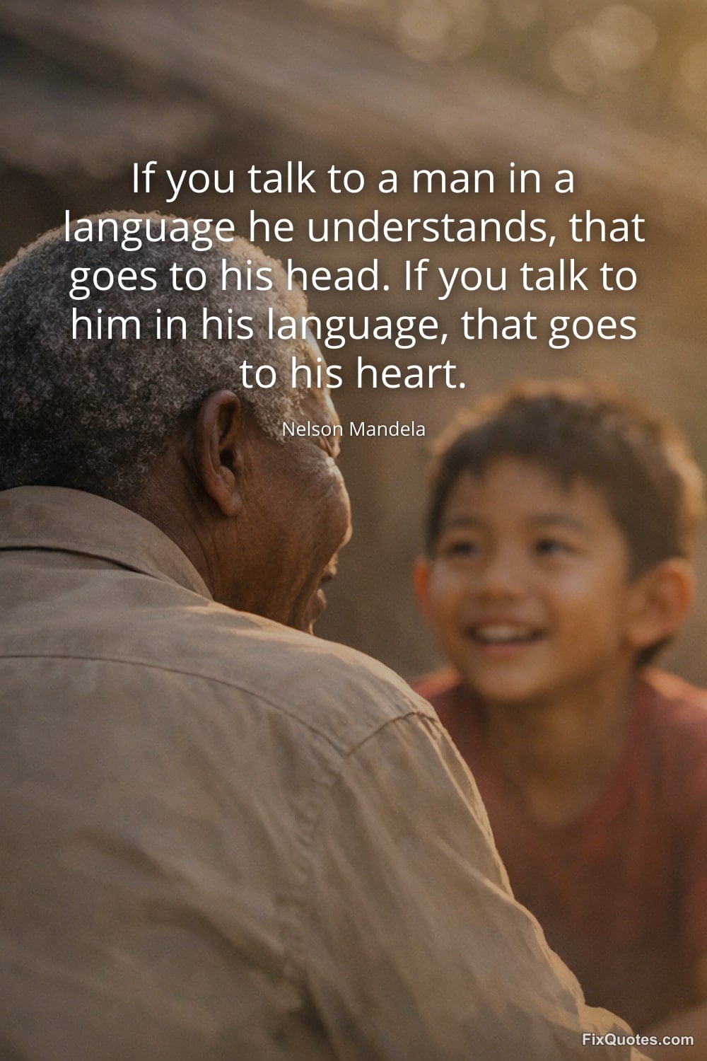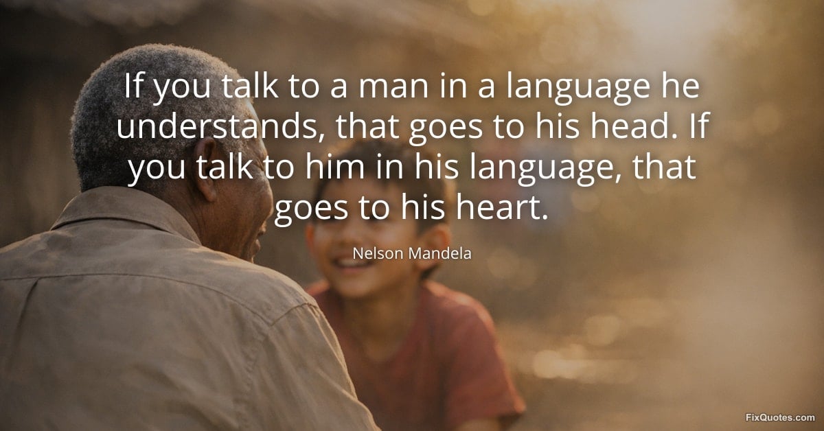 Mandela, Nelson. (2026, February 2). If you talk to a man in a language he understands, that goes to his head. If you talk to him in his language, that goes to his heart. FixQuotes. https://fixquotes.com/quotes/if-you-talk-to-a-man-in-a-language-he-understands-1027/