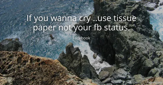 Facebook. (2026, January 14). If you wanna cry ..use tissue paper not your fb status. FixQuotes. https://fixquotes.com/quotes/if-you-wanna-cry-use-tissue-paper-not-your-fb-171425/