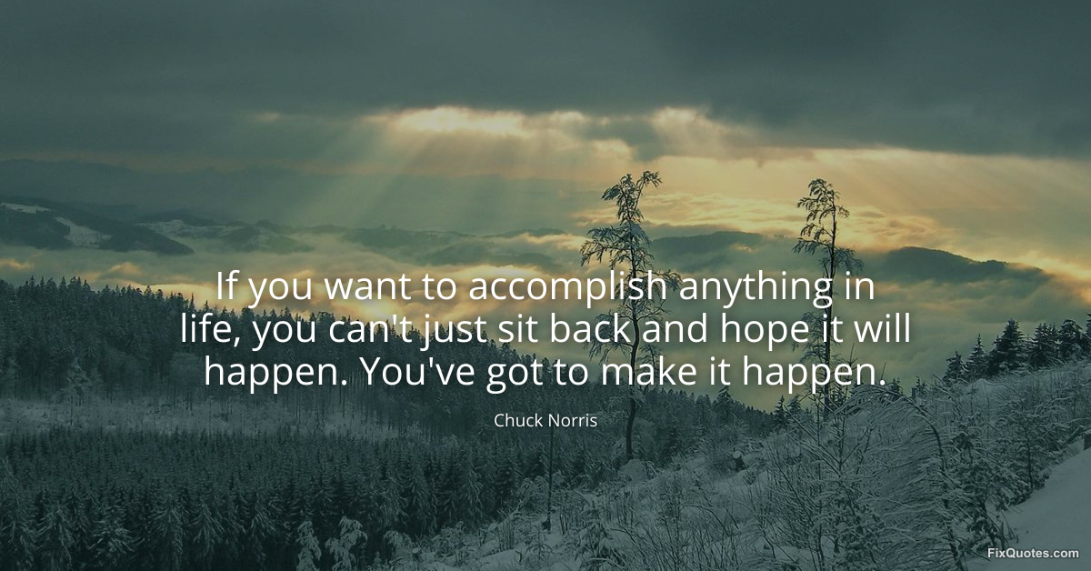 Norris, Chuck. (2026, March 20). If you want to accomplish anything in life, you can't just sit back and hope it will happen. You've got to make it happen. FixQuotes. https://fixquotes.com/quotes/if-you-want-to-accomplish-anything-in-life-you-186193/