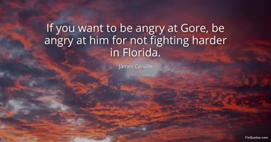 Carville, James. "If you want to be angry at Gore, be angry at him for not fighting harder in Florida." FixQuotes. January 17, 2026. https://fixquotes.com/quotes/if-you-want-to-be-angry-at-gore-be-angry-at-him-69129/.