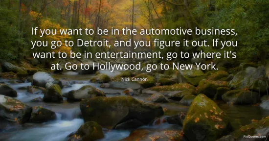 Cannon, Nick. (2026, January 16). If you want to be in the automotive business, you go to Detroit, and you figure it out. If you want to be in entertainment, go to where it's at. Go to Hollywood, go to New York. FixQuotes. https://fixquotes.com/quotes/if-you-want-to-be-in-the-automotive-business-you-114804/