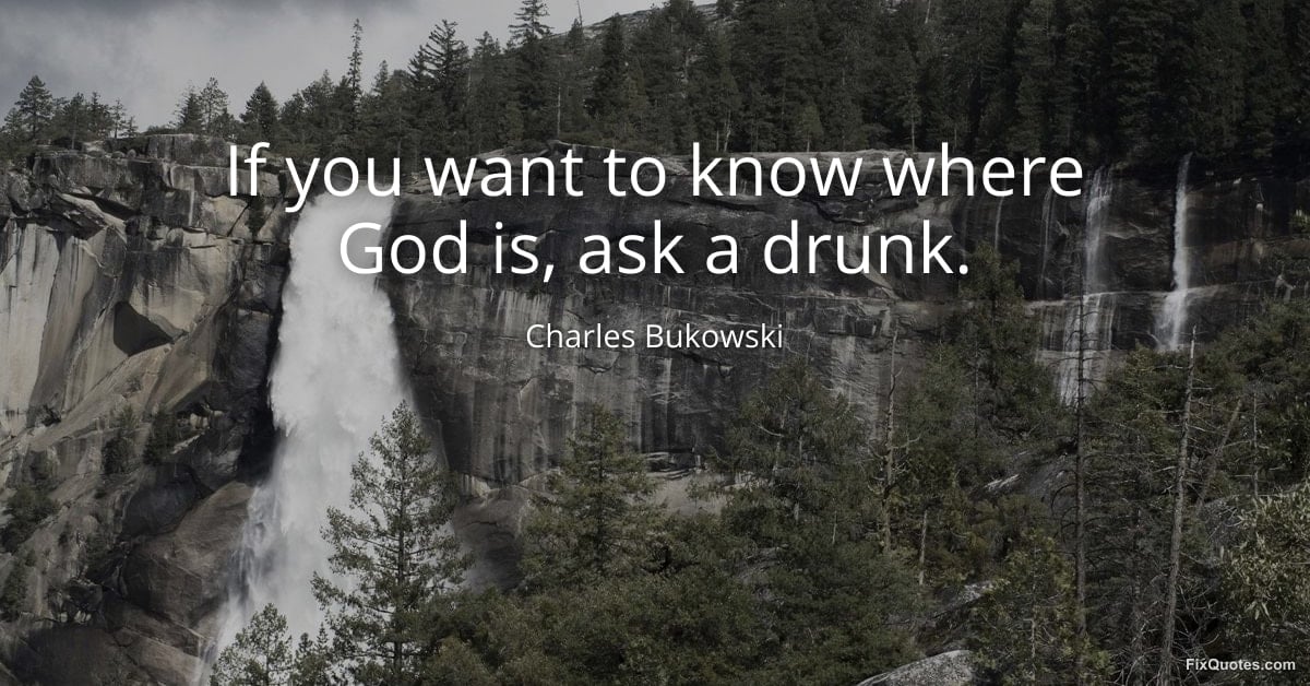 Bukowski, Charles. (2026, February 10). If you want to know where God is, ask a drunk. FixQuotes. https://fixquotes.com/quotes/if-you-want-to-know-where-god-is-ask-a-drunk-185242/