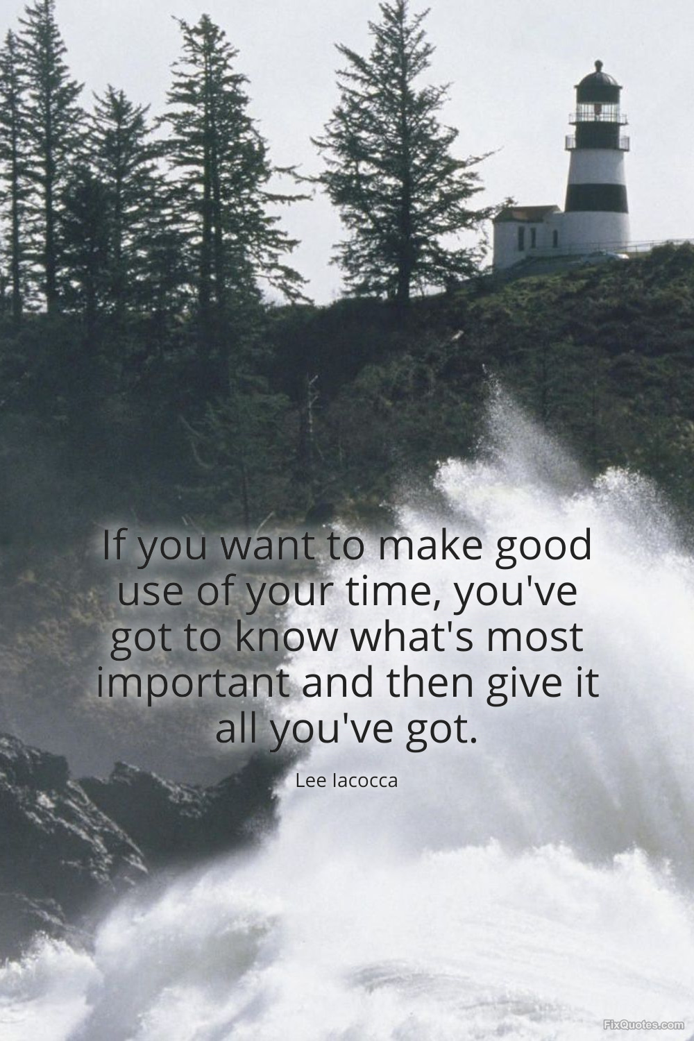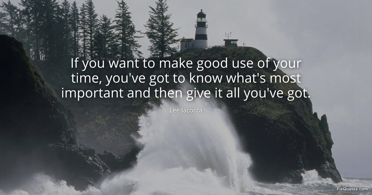 Iacocca, Lee. (2026, January 17). If you want to make good use of your time, you've got to know what's most important and then give it all you've got. FixQuotes. https://fixquotes.com/quotes/if-you-want-to-make-good-use-of-your-time-youve-32482/
