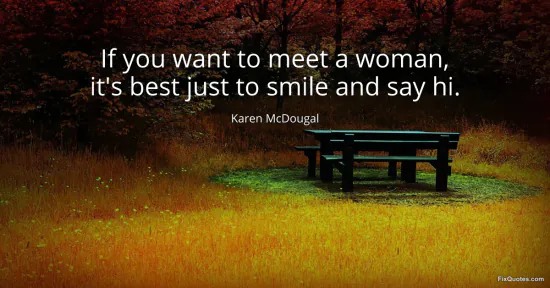 McDougal, Karen. (2026, January 16). If you want to meet a woman, it's best just to smile and say hi. FixQuotes. https://fixquotes.com/quotes/if-you-want-to-meet-a-woman-its-best-just-to-103411/