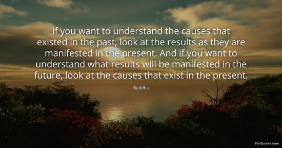 Buddha. "If you want to understand the causes that existed in the past, look at the results as they are manifested in the present. And if you want to understand what results will be manifested in the future, look at the causes that exist in the present." FixQuotes. March 10, 2026. https://fixquotes.com/quotes/if-you-want-to-understand-the-causes-that-existed-185972/.