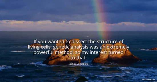 Lederberg, Joshua. (2026, January 16). If you wanted to dissect the structure of living cells, genetic analysis was an extremely powerful method, so my interest turned to that. FixQuotes. https://fixquotes.com/quotes/if-you-wanted-to-dissect-the-structure-of-living-107318/