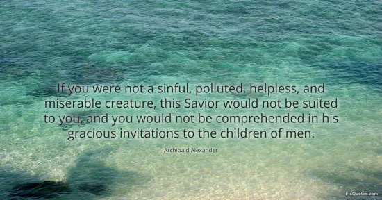 Alexander, Archibald. "If you were not a sinful, polluted, helpless, and miserable creature, this Savior would not be suited to you, and you would not be comprehended in his gracious invitations to the children of men." FixQuotes. January 17, 2026. https://fixquotes.com/quotes/if-you-were-not-a-sinful-polluted-helpless-and-44186/.