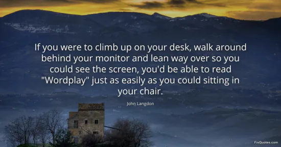 Langdon, John. (2026, January 16). If you were to climb up on your desk, walk around behind your monitor and lean way over so you could see the screen, you'd be able to read "Wordplay" just as easily as you could sitting in your chair. FixQuotes. https://fixquotes.com/quotes/if-you-were-to-climb-up-on-your-desk-walk-around-118268/