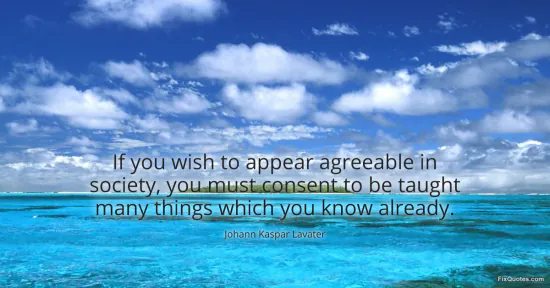 Lavater, Johann Kaspar. (2026, January 18). If you wish to appear agreeable in society, you must consent to be taught many things which you know already. FixQuotes. https://fixquotes.com/quotes/if-you-wish-to-appear-agreeable-in-society-you-22691/