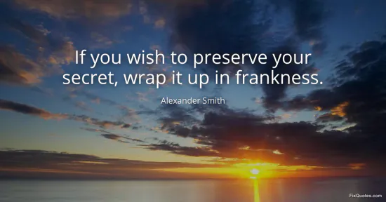 Smith, Alexander. (2026, January 18). If you wish to preserve your secret, wrap it up in frankness. FixQuotes. https://fixquotes.com/quotes/if-you-wish-to-preserve-your-secret-wrap-it-up-in-20978/
