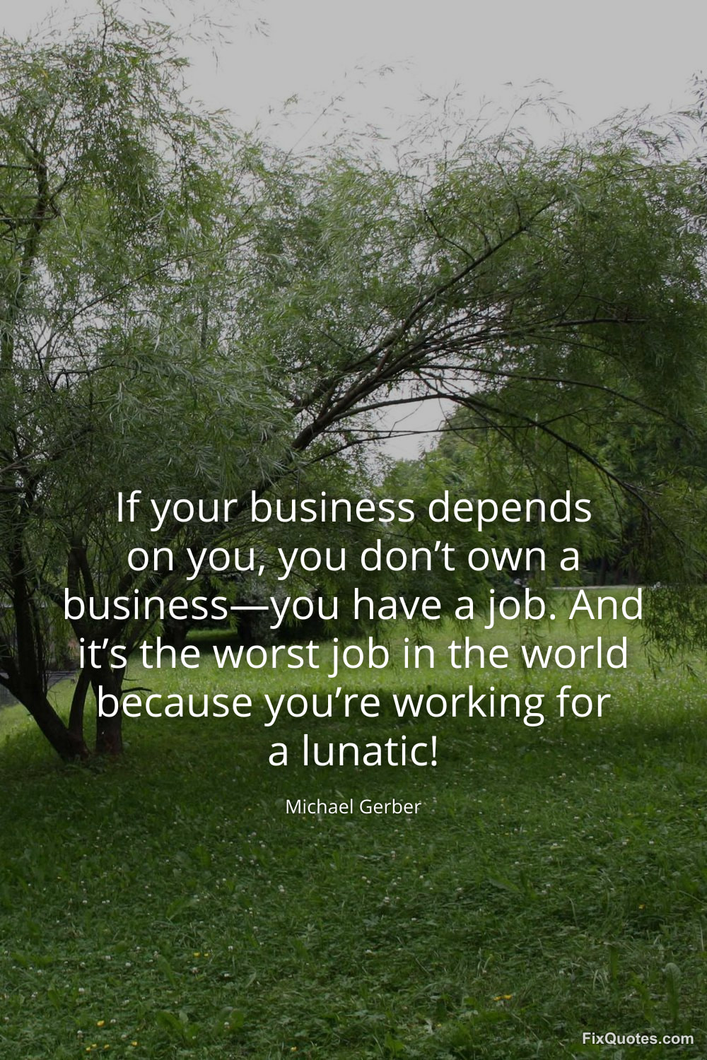 Gerber, Michael. (2026, February 5). If your business depends on you, you don’t own a business—you have a job. And it’s the worst job in the world because you’re working for a lunatic! FixQuotes. https://fixquotes.com/quotes/if-your-business-depends-on-you-you-dont-own-a-184938/