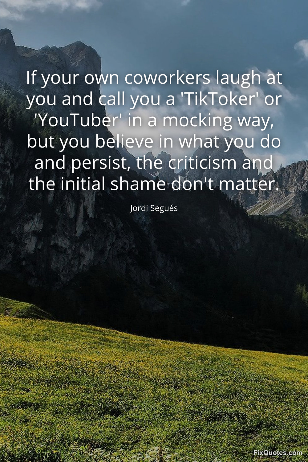 Segués, Jordi. (2026, February 16). If your own coworkers laugh at you and call you a 'TikToker' or 'YouTuber' in a mocking way, but you believe in what you do and persist, the criticism and the initial shame don't matter. FixQuotes. https://fixquotes.com/quotes/if-your-own-coworkers-laugh-at-you-and-call-you-a-185553/