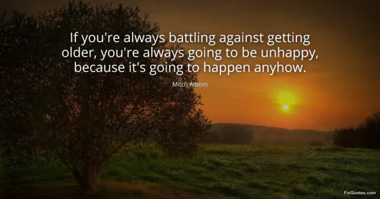 Albom, Mitch. (2026, January 17). If you're always battling against getting older, you're always going to be unhappy, because it's going to happen anyhow. FixQuotes. https://fixquotes.com/quotes/if-youre-always-battling-against-getting-older-75081/