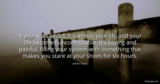 Taylor, James. (2026, January 17). If you're an addict, it controls your life and your life becomes uncontrollable. It's boring and painful, filling your system with something that makes you stare at your shoes for six hours. FixQuotes. https://fixquotes.com/quotes/if-youre-an-addict-it-controls-your-life-and-your-62016/
