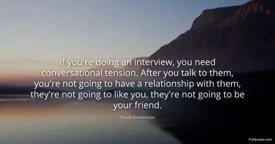 Klosterman, Chuck. (2026, January 15). If you're doing an interview, you need conversational tension. After you talk to them, you're not going to have a relationship with them, they're not going to like you, they're not going to be your friend. FixQuotes. https://fixquotes.com/quotes/if-youre-doing-an-interview-you-need-140681/