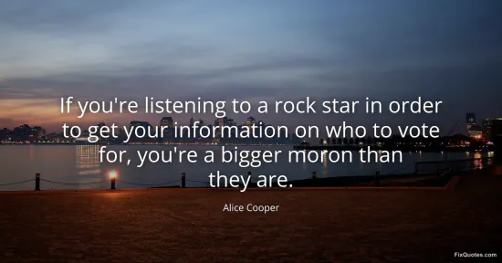 Cooper, Alice. (2026, January 15). If you're listening to a rock star in order to get your information on who to vote for, you're a bigger moron than they are. FixQuotes. https://fixquotes.com/quotes/if-youre-listening-to-a-rock-star-in-order-to-get-41810/