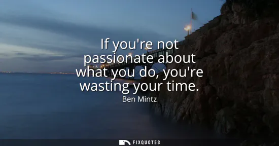 Ben Mintz’s businessman framing matters. In contemporary work culture, “passion” doubles as both fuel and filter. It’s the language of founders pitching investors, managers selling long hours, and influencers narrating careers as destiny. The subtext is transactional: if you love it, you’ll endure instability, lower pay, or constant grind because the reward is meaning. “Wasting your time” is the coercive edge, implying that unglamorous jobs, pragmatic choices, or periods of ambivalence aren’t just necessary compromises but personal failures.