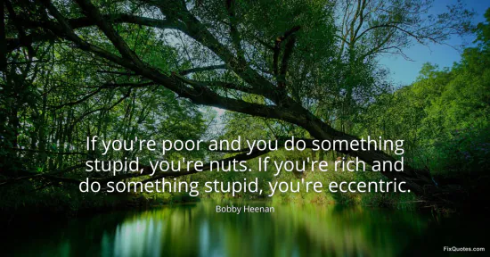 Heenan, Bobby. (2026, January 17). If you're poor and you do something stupid, you're nuts. If you're rich and do something stupid, you're eccentric. FixQuotes. https://fixquotes.com/quotes/if-youre-poor-and-you-do-something-stupid-youre-73683/