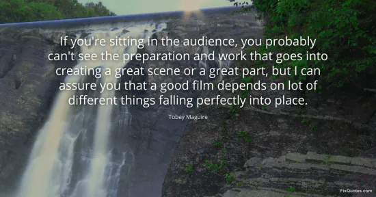Maguire, Tobey. (2026, January 15). If you're sitting in the audience, you probably can't see the preparation and work that goes into creating a great scene or a great part, but I can assure you that a good film depends on lot of different things falling perfectly into place. FixQuotes. https://fixquotes.com/quotes/if-youre-sitting-in-the-audience-you-probably-65912/