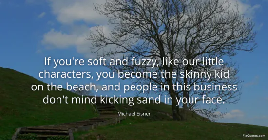 Eisner, Michael. (2026, January 16). If you're soft and fuzzy, like our little characters, you become the skinny kid on the beach, and people in this business don't mind kicking sand in your face. FixQuotes. https://fixquotes.com/quotes/if-youre-soft-and-fuzzy-like-our-little-105451/
