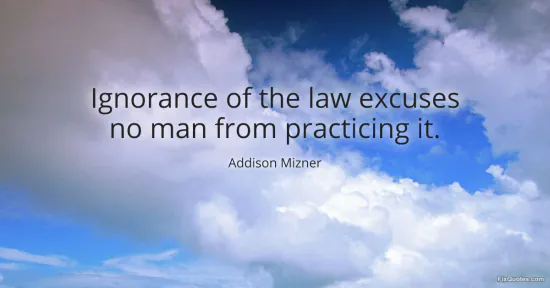 Mizner, Addison. (2026, January 16). Ignorance of the law excuses no man from practicing it. FixQuotes. https://fixquotes.com/quotes/ignorance-of-the-law-excuses-no-man-from-119022/