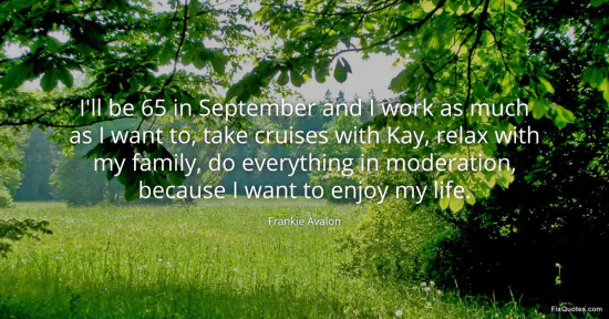 Avalon, Frankie. (2026, January 15). I'll be 65 in September and I work as much as I want to, take cruises with Kay, relax with my family, do everything in moderation, because I want to enjoy my life. FixQuotes. https://fixquotes.com/quotes/ill-be-65-in-september-and-i-work-as-much-as-i-168873/