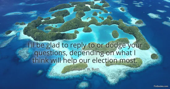 Bush, George H. W. "I'll be glad to reply to or dodge your questions, depending on what I think will help our election most." FixQuotes. January 17, 2026. https://fixquotes.com/quotes/ill-be-glad-to-reply-to-or-dodge-your-questions-63236/.