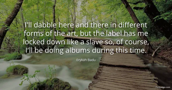 Badu, Erykah. (2026, January 17). I'll dabble here and there in different forms of the art, but the label has me locked down like a slave so, of course, I'll be doing albums during this time. FixQuotes. https://fixquotes.com/quotes/ill-dabble-here-and-there-in-different-forms-of-50064/
