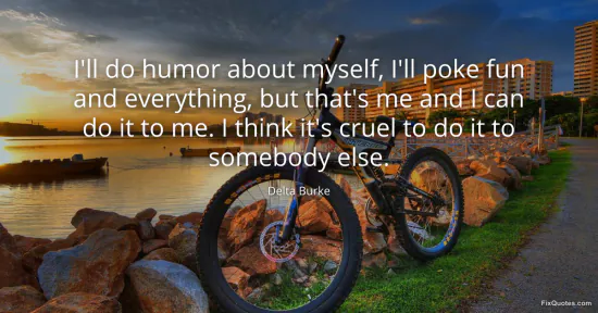 Burke, Delta. (n.d.). I'll do humor about myself, I'll poke fun and everything, but that's me and I can do it to me. I think it's cruel to do it to somebody else. FixQuotes. https://fixquotes.com/quotes/ill-do-humor-about-myself-ill-poke-fun-and-48342/