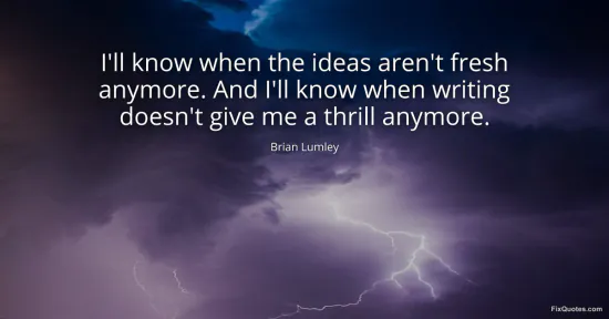 Lumley, Brian. (2026, January 16). I'll know when the ideas aren't fresh anymore. And I'll know when writing doesn't give me a thrill anymore. FixQuotes. https://fixquotes.com/quotes/ill-know-when-the-ideas-arent-fresh-anymore-and-123418/